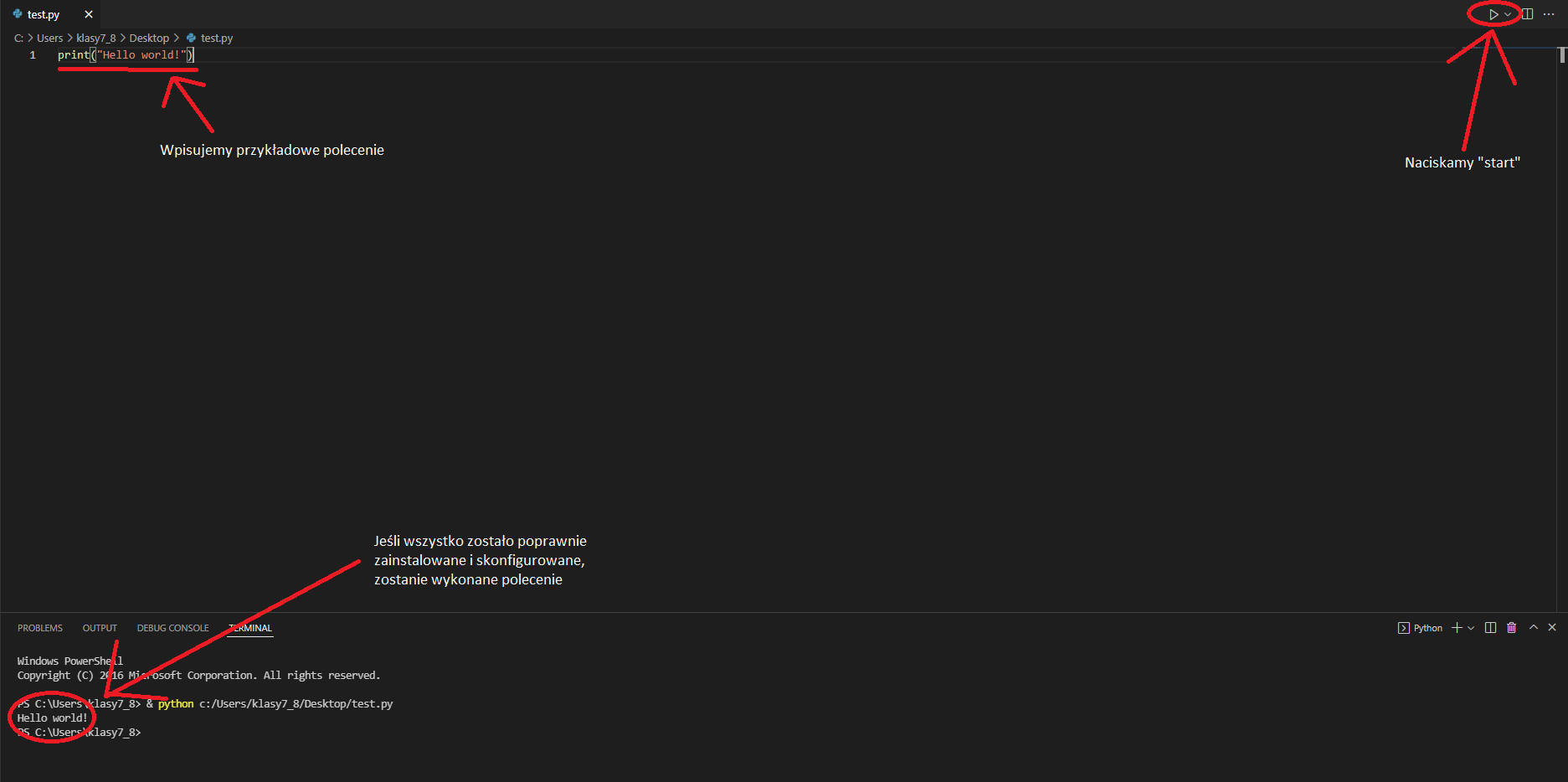 print( ), która pozwala wydrukować to, co zostało wpisane